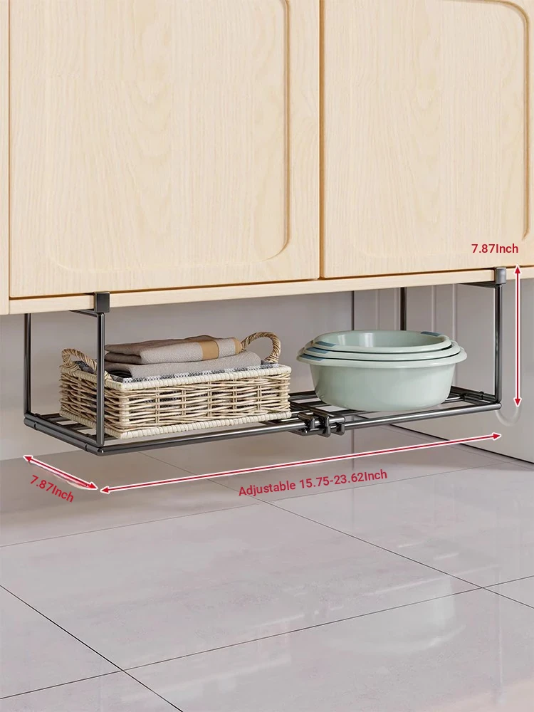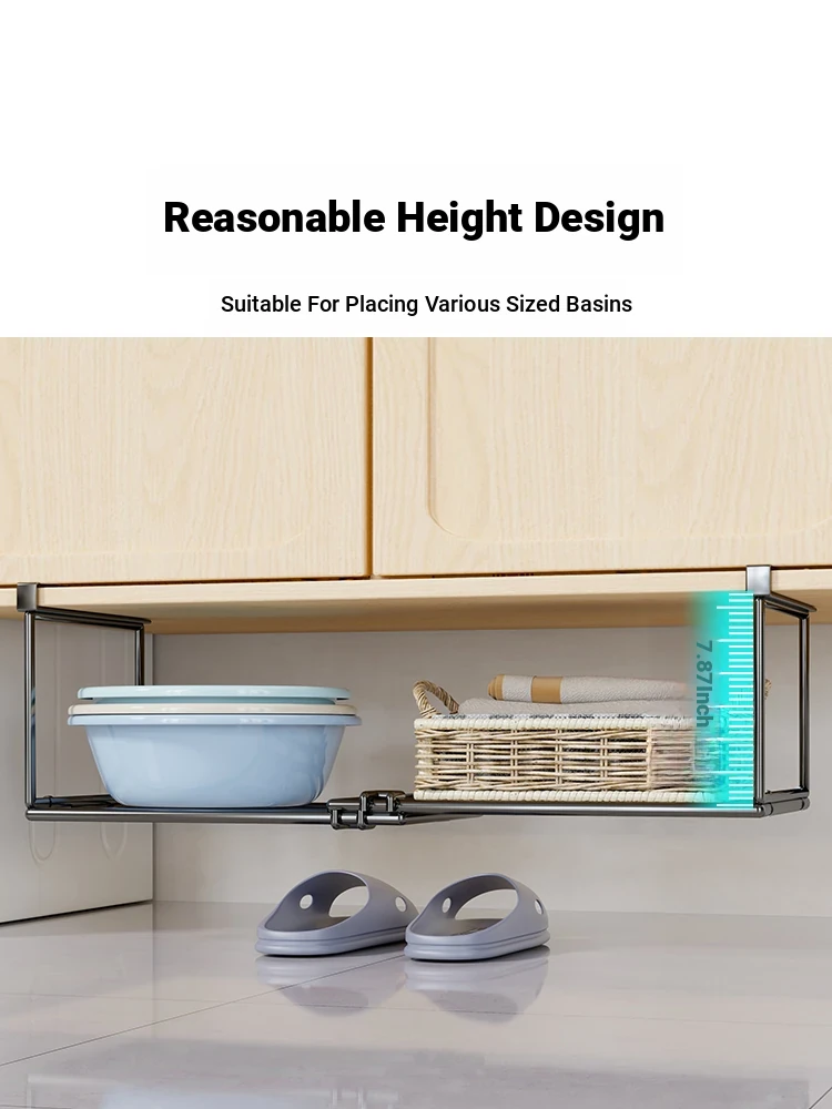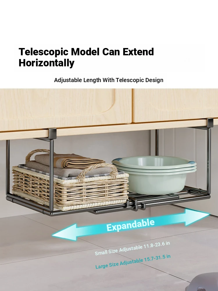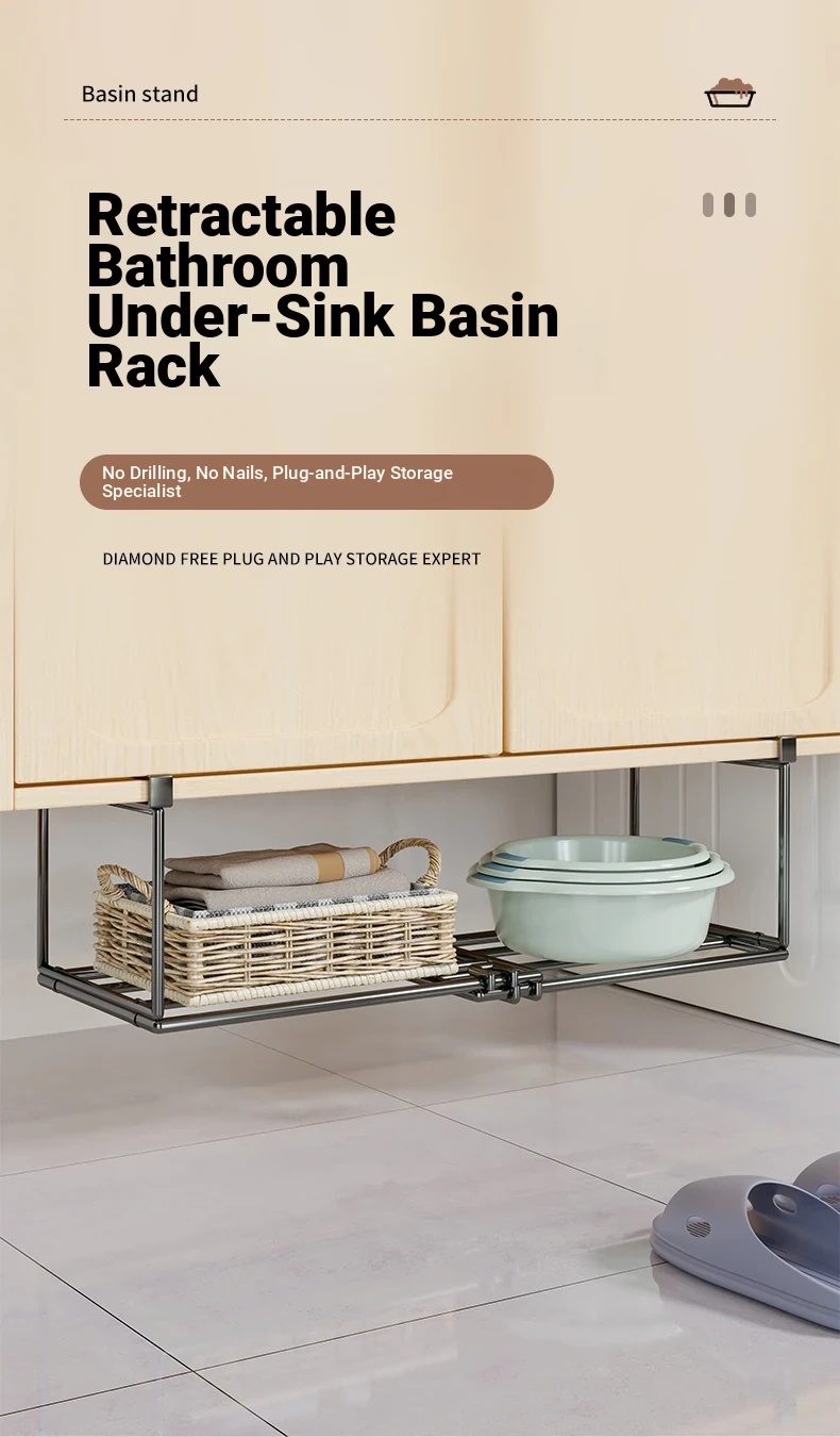 Expandable and Retractable Bathroom Sink Storage Rack - Minimalist Iron Hanging Basin Organizer for Under-Counter Use, Perfect for Space-Saving in Your Washroom