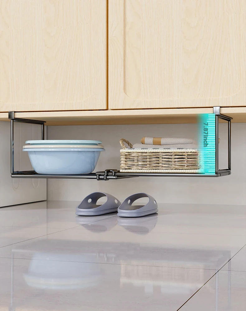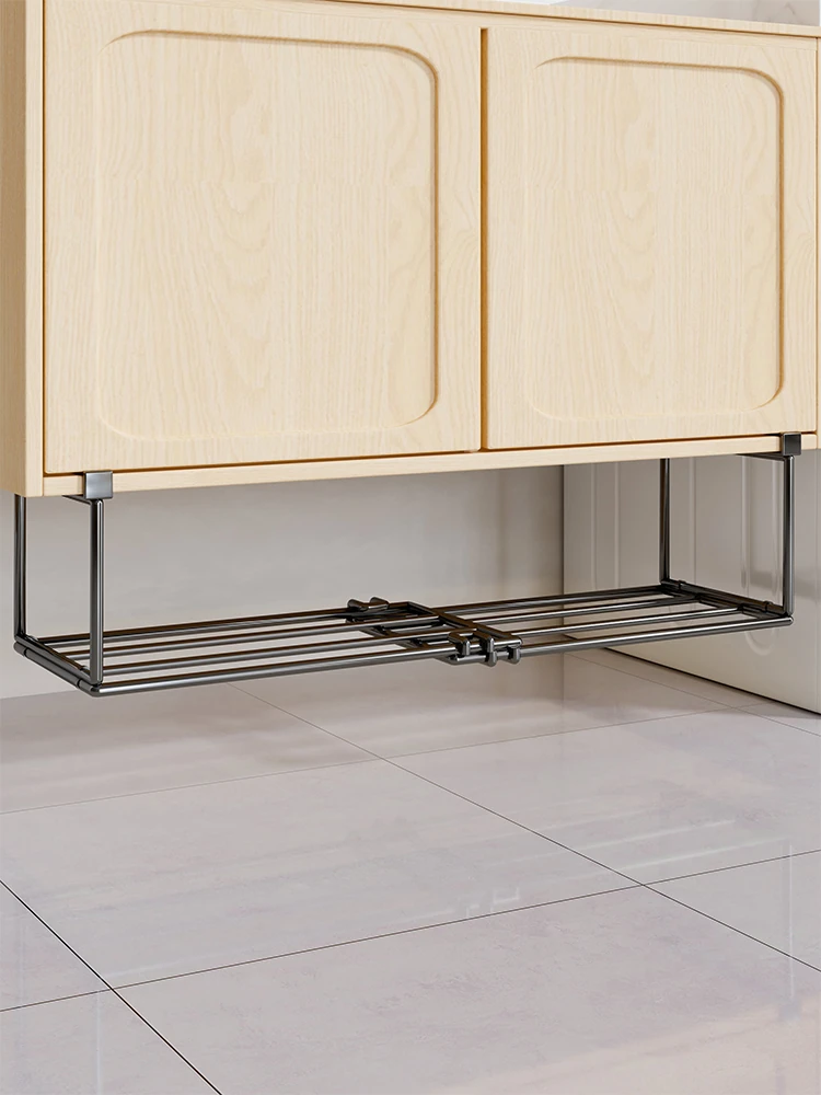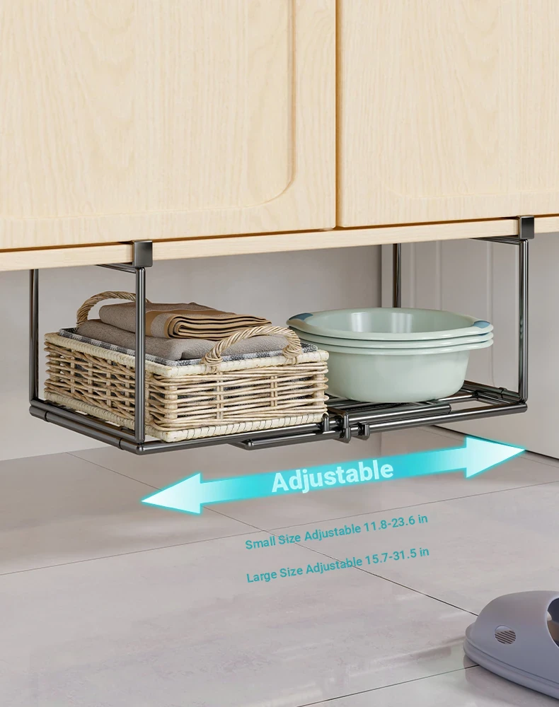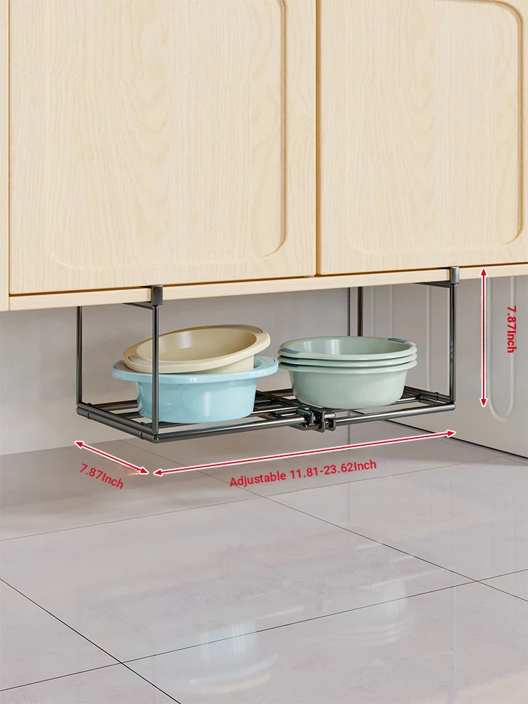 Expandable and Retractable Bathroom Sink Storage Rack - Minimalist Iron Hanging Basin Organizer for Under-Counter Use, Perfect for Space-Saving in Your Washroom