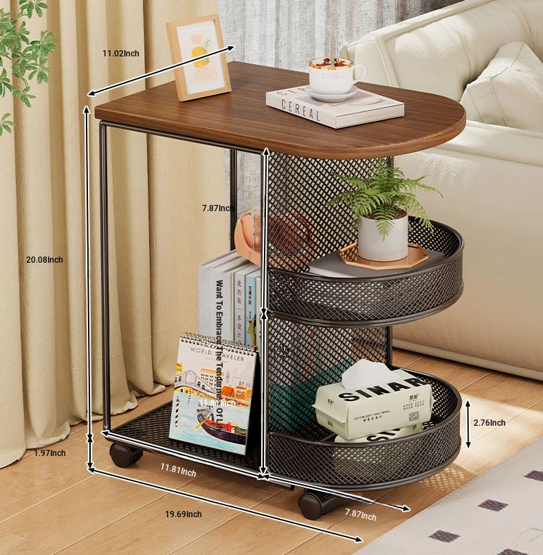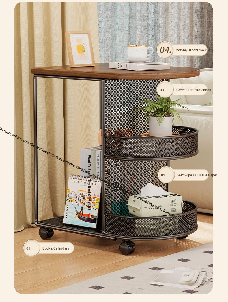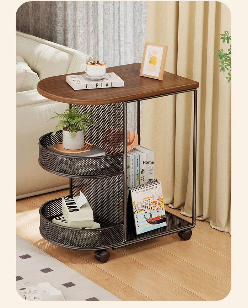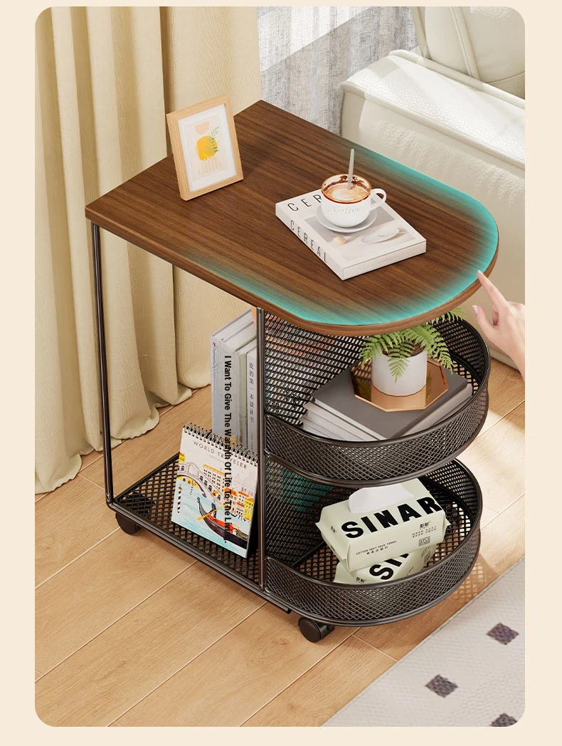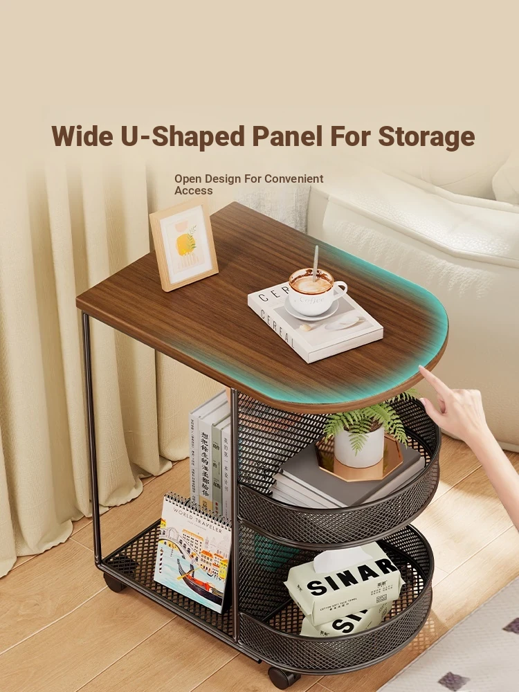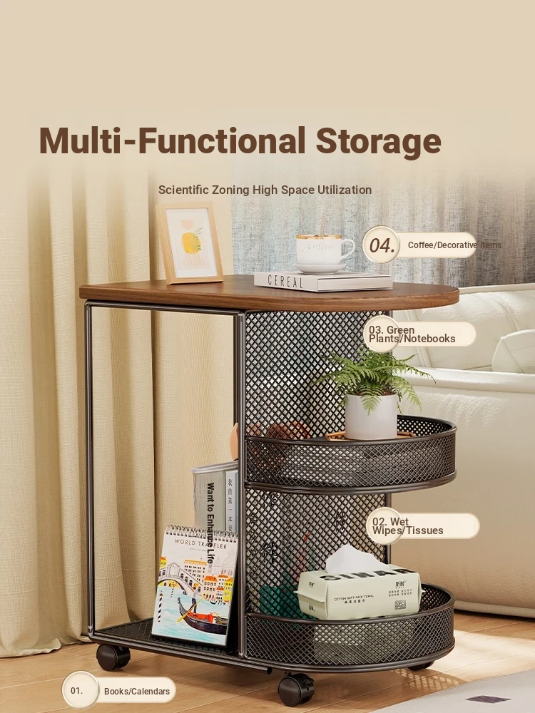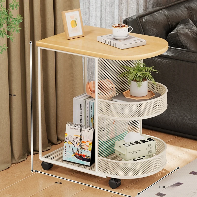 Portable Multi-Tier Side Table with Wheels - Mini Coffee Table and Nightstand for Living Room, Ideal for Storage and Easy Mobility