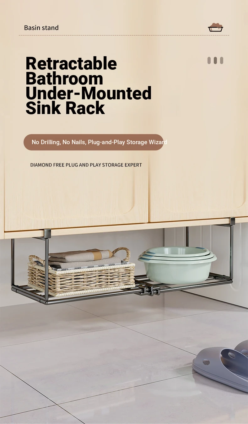 "Space-Saving Hanging Sink Storage Rack for Bathroom - Stylish Under-Sink Organizer for Face Wash Basin, Maximizing Your Bathroom's Potential!"