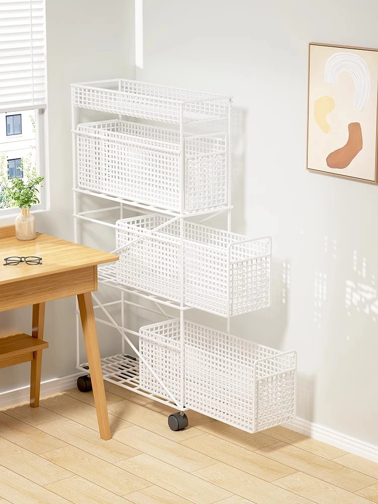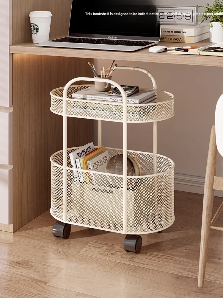 Portable Metal Book Rack with Wheels - Slim Space-Saving Children's Bookshelf, Multi-Layer Storage Solution for Living Room and Study