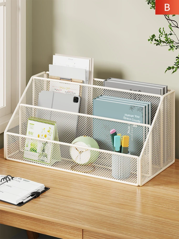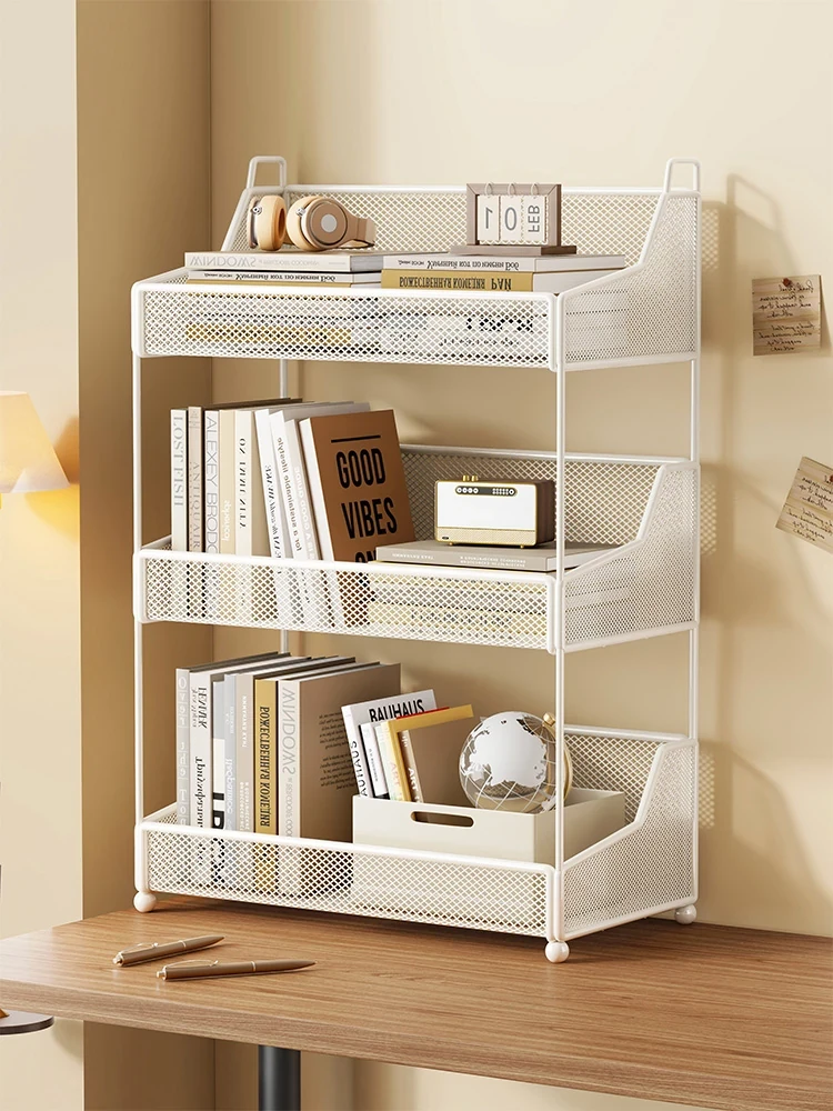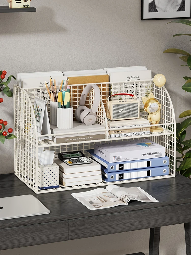 Multi-Tier Iron Desktop Organizer – Stylish Storage Rack for Books and Office Supplies, Perfect for Home and Workspace Clutter Management
