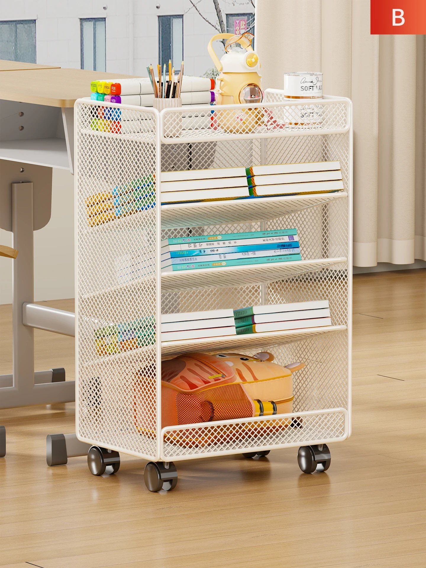 Portable Bookshelf for Students - Movable Floor Storage Rack for Classroom, Easy Storage Cabinet Next to Desk, Perfect for Books and Organizing Supplies