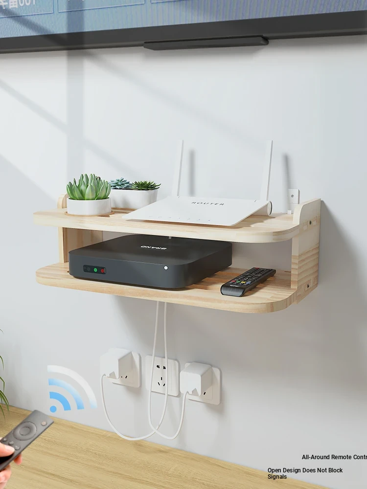 Wall-Mounted Solid Wood Router and Set-Top Box Shelf - No Drilling Required, Perfect for Living Room Storage Solution