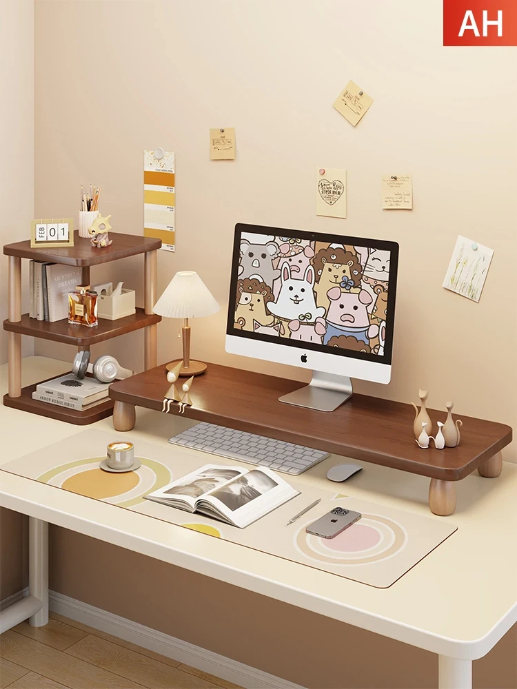 Ergonomic Monitor Stand for Desk - Adjustable Height Desktop Display Riser with Multi-Tier Storage Organizer for Books and Office Supplies - Ideal for Home and Office Workspaces