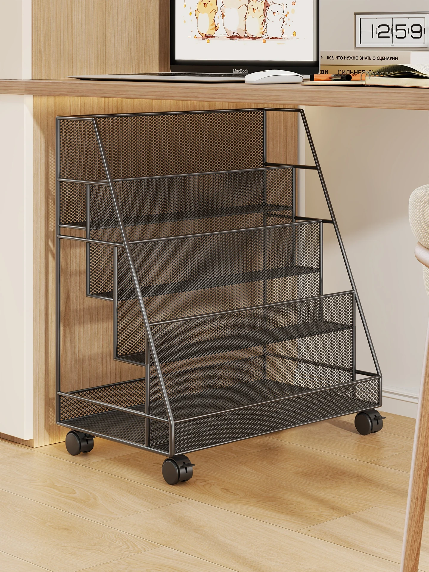 Multi-Layer Children's Book Shelf with Wheels - Versatile Floor-Standing Book Rack, Space-Saving Wall-Mounted Design, Perfect for Kids' Storybooks, Ideal Under-Desk Storage Solution
