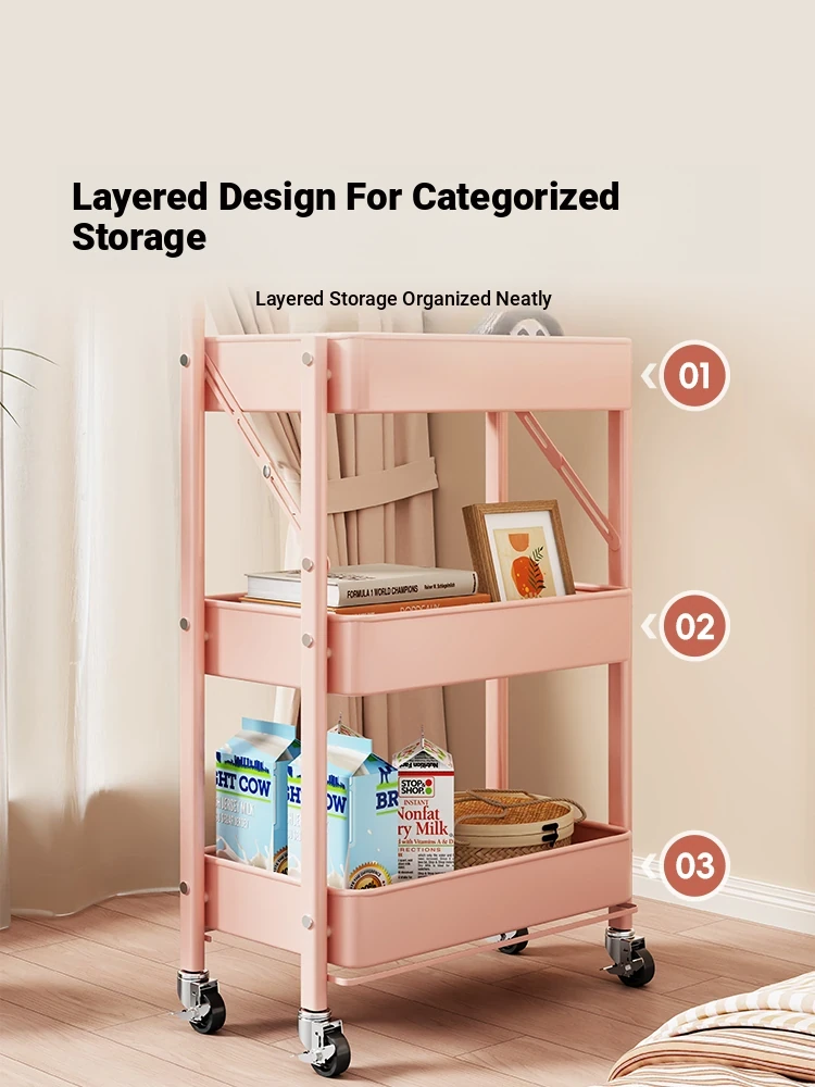 Mobile Side Table with Wheels - Foldable Storage Cart for Living Room, Kitchen, and Home Use - Versatile Bookshelf and Organizer