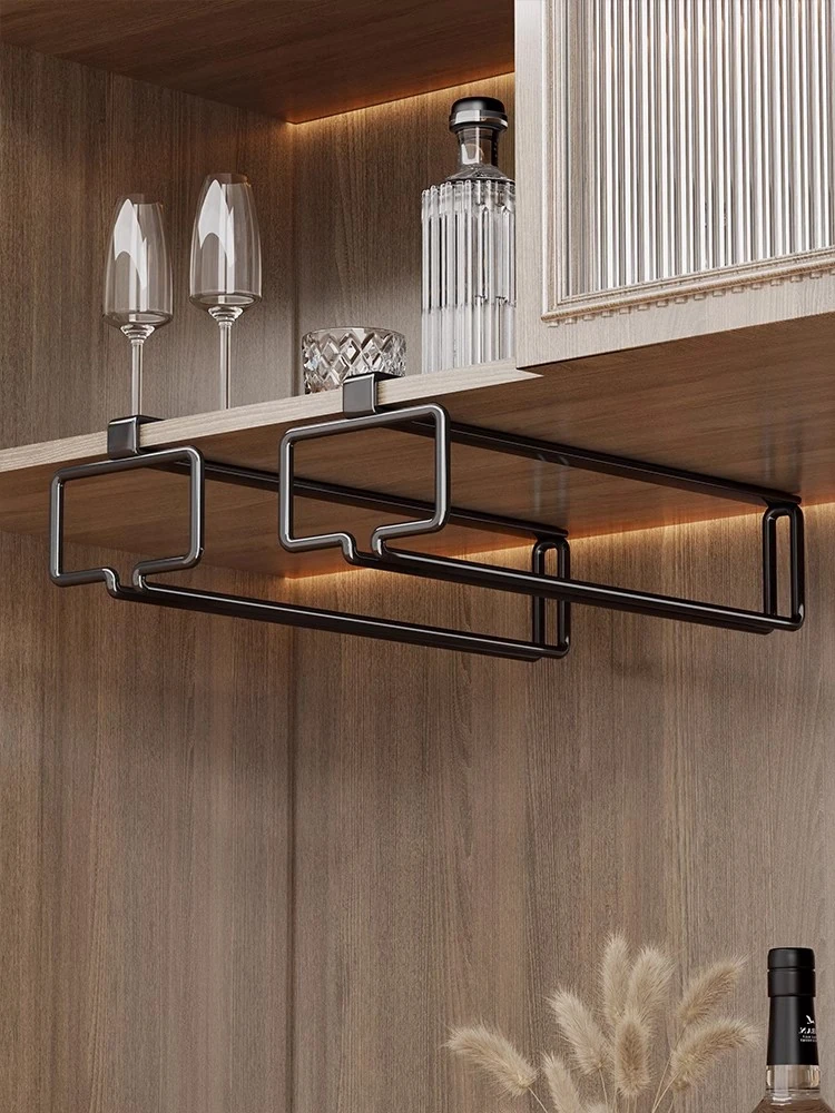 No-Drill Under-Cabinet Hanging Wine Glass Rack - Stylish High-End Storage Solution for Your Home Kitchen, Perfect for Displaying Stemware with Elegance and Sophistication.