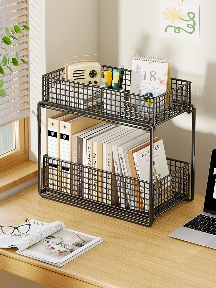 Multi-Layer Iron Storage Shelf - Perfect Book Organizer for Students, Home, and Office! Stylish and Functional Bookcase for Your Desk, Living Room, and File Organization. Keep Your Space Neat and Tidy!