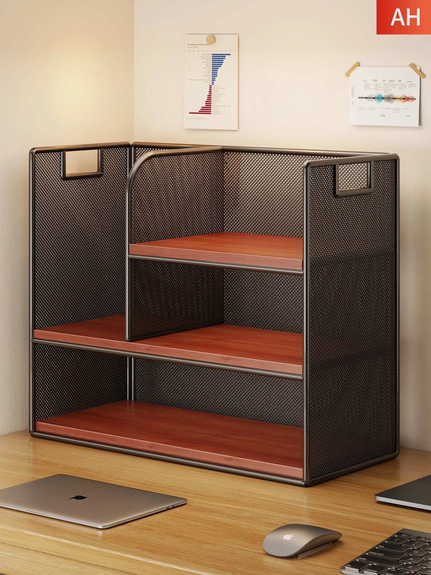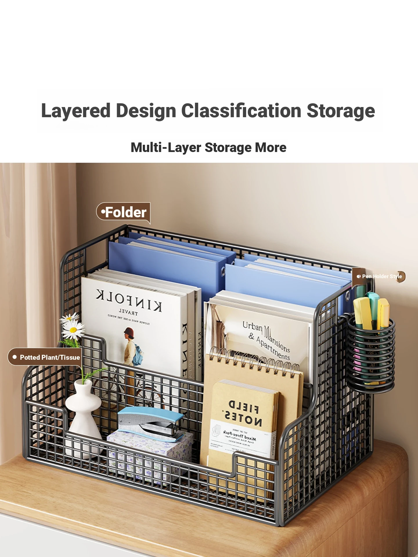 Multi-Tier Desktop Storage Rack - Versatile Office Organizer for Files and Books, Compact and Simple Design, Perfect for Workstations