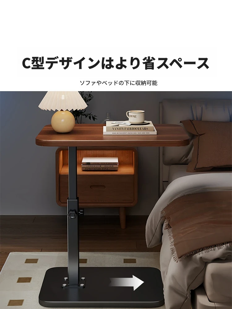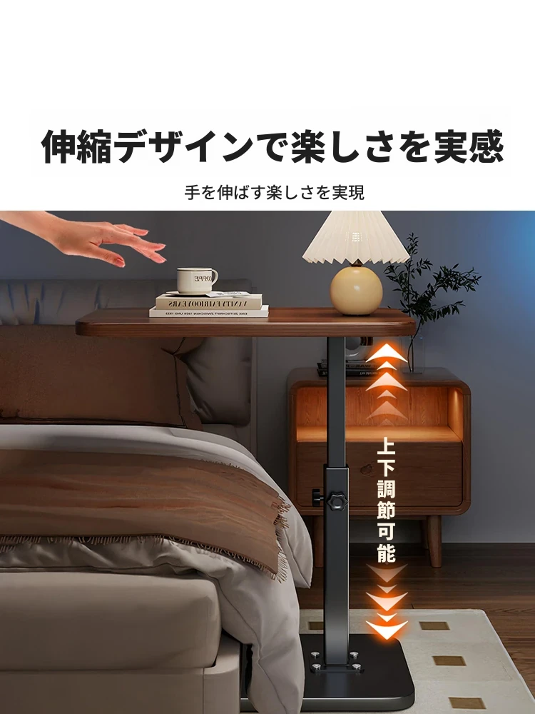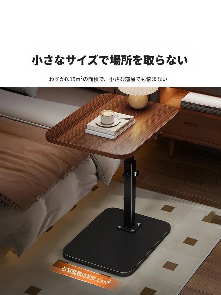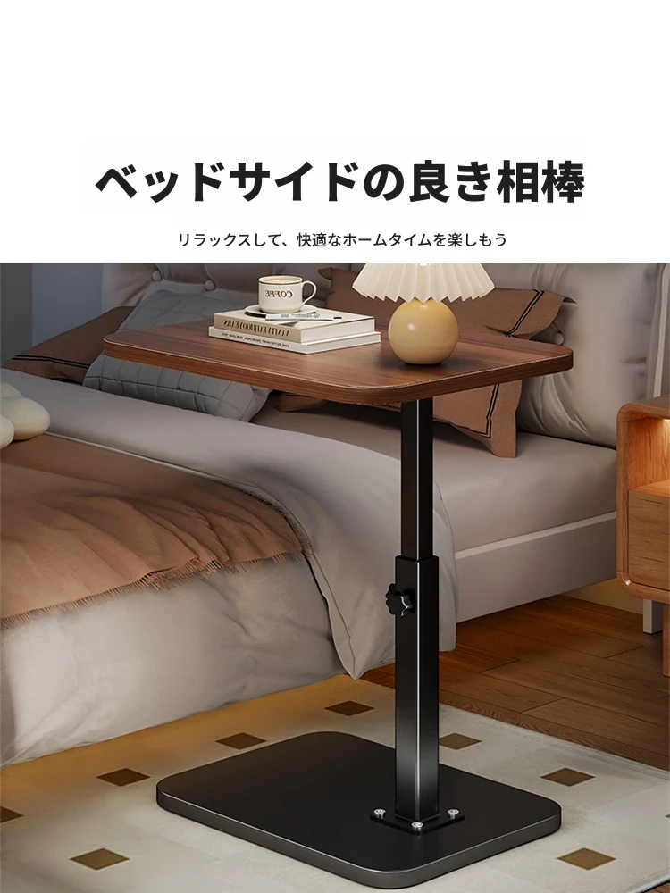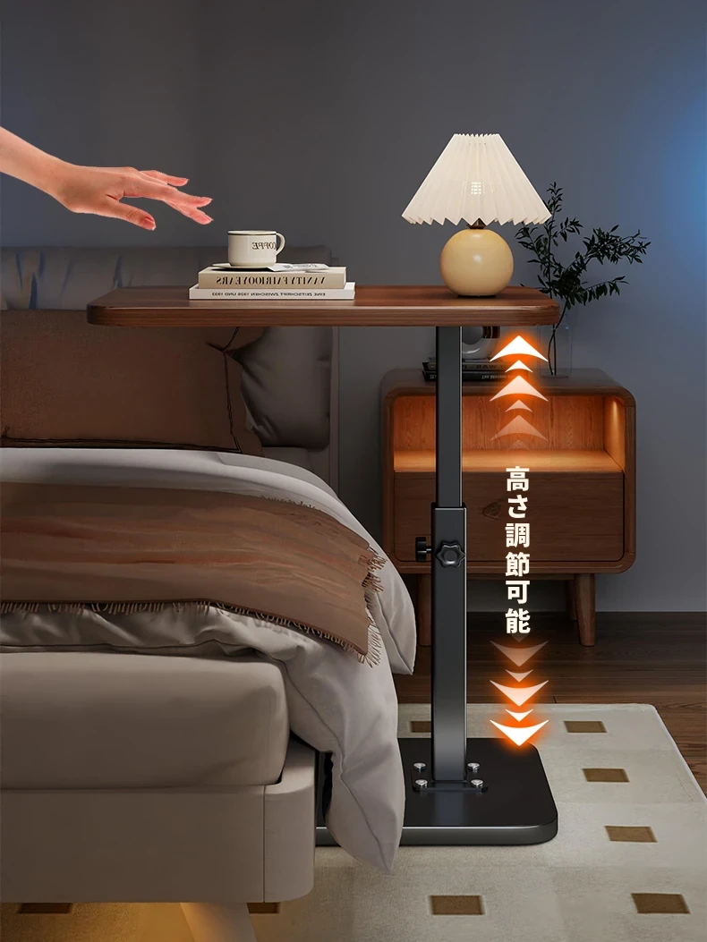 移動可能なベッドサイドテーブル|昇降式のコンピューターデスク|シンプルで機能的な寝室用|学生の学習やリラックスに最適|折りたたみ式オフィスデスクでスペースを有効活用!