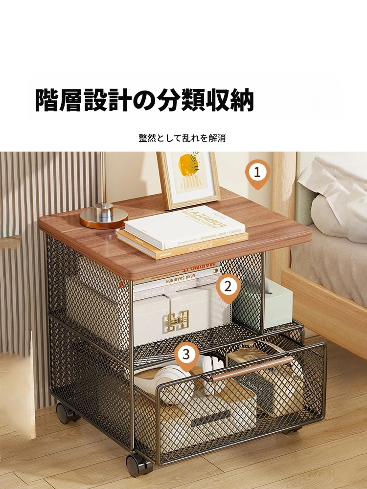 ベッドサイド収納キャビネット - シンプルでコンパクトなデザイン、書籍や雑誌を整理整頓!移動も簡単なフロアスタンドタイプで、あなたの寝室をスッキリと演出します。収納力抜群の便利アイテム!