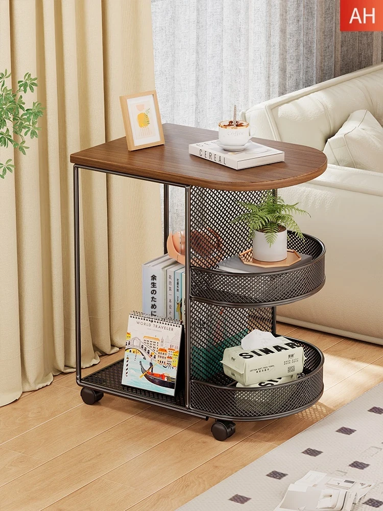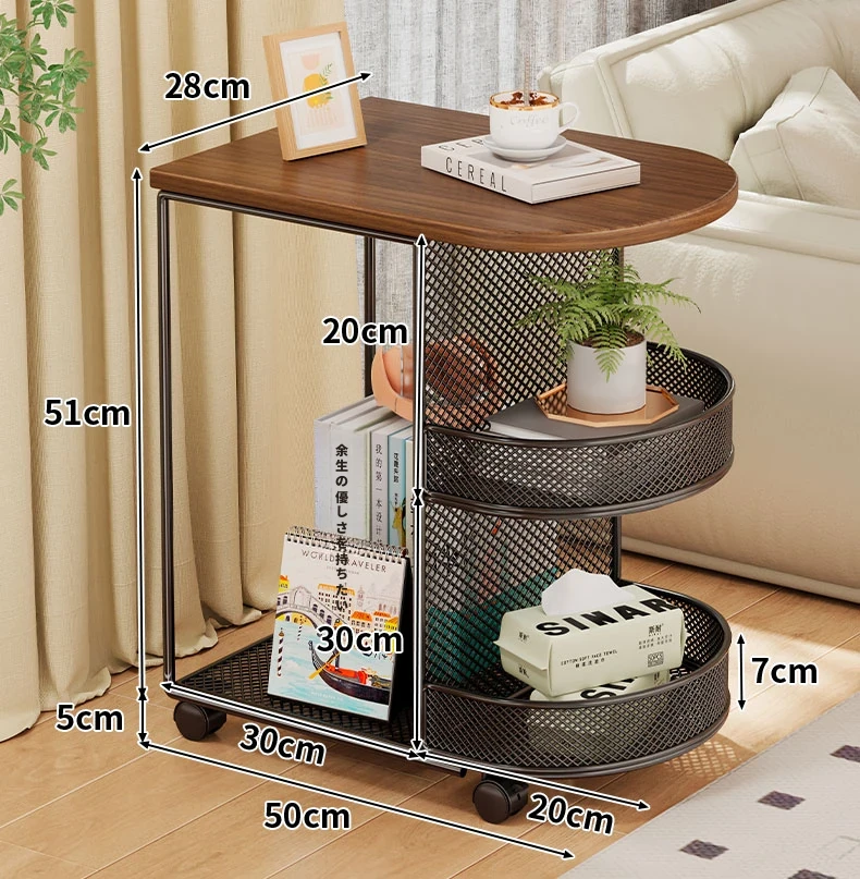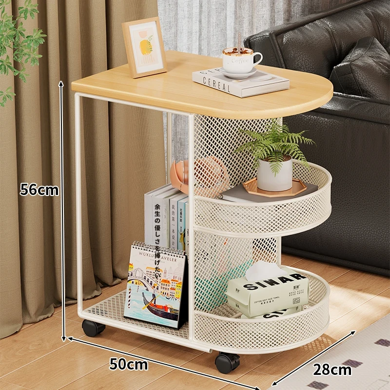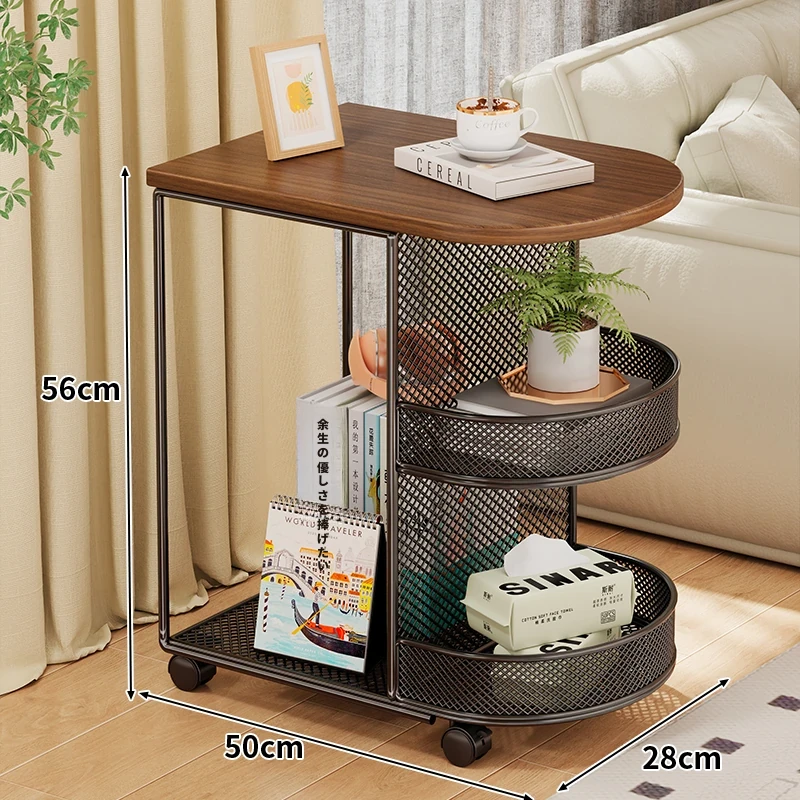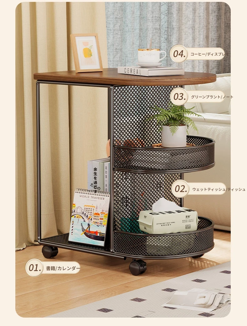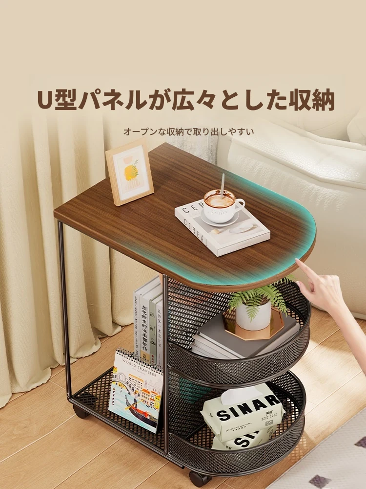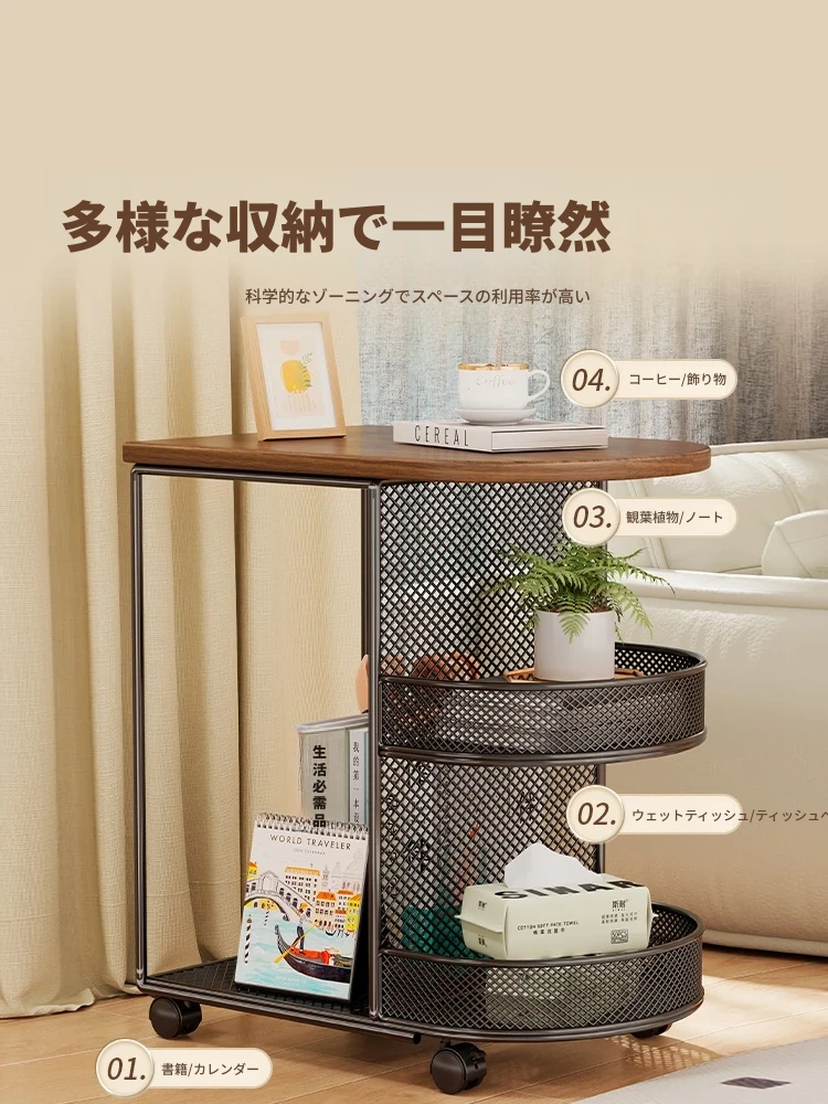 移動式小型サイドテーブル - リビングに最適な収納力を持つミニキャビネット!キャスター付きで便利な2段構造、ベッドサイドやリビングルームにぴったりなアイテム!