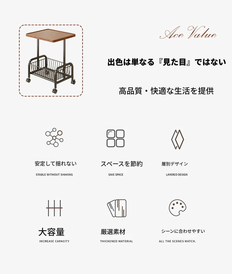 移動式ソファサイドテーブル!おしゃれなリビングにぴったりなコンパクトなサイドキャビネット。簡単に使えるベッドサイド収納やティーキャビネットとしても大活躍!あなたの生活空間をさらに魅力的に演出します。