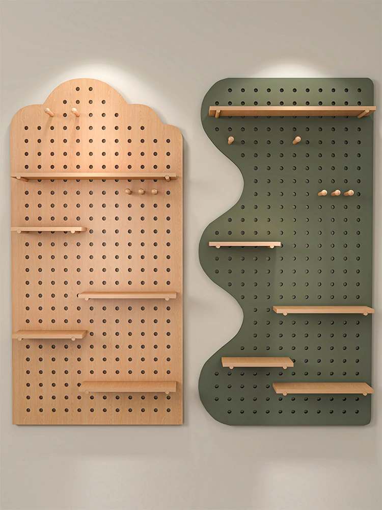 穴あきボード収納ラック - 天然木製の玄関用壁面収納。おしゃれなデザインで、入出時の小物やコートをスッキリ整理!リビングにもぴったりの多機能アイテム。