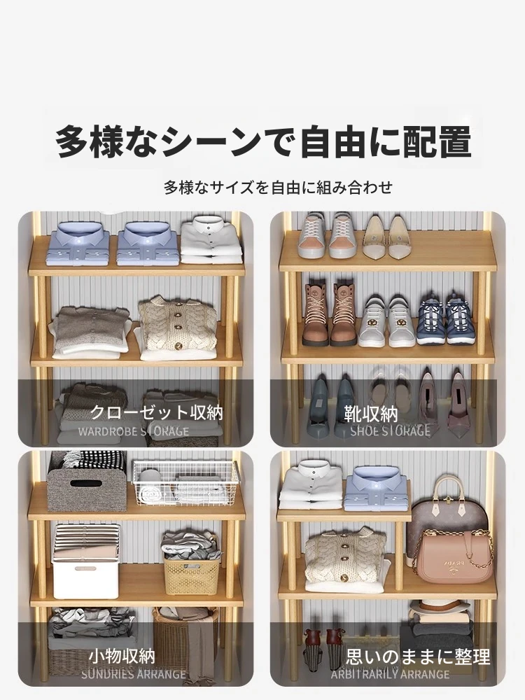 クローゼット用分割棚 - 家庭用収納の必需品!おしゃれなデザインで整理整頓を簡単に。棚の層を調整可能で、スペースを有効活用!木製の高品質仕上げで、耐久性抜群。あなたの収納をもっと便利に!