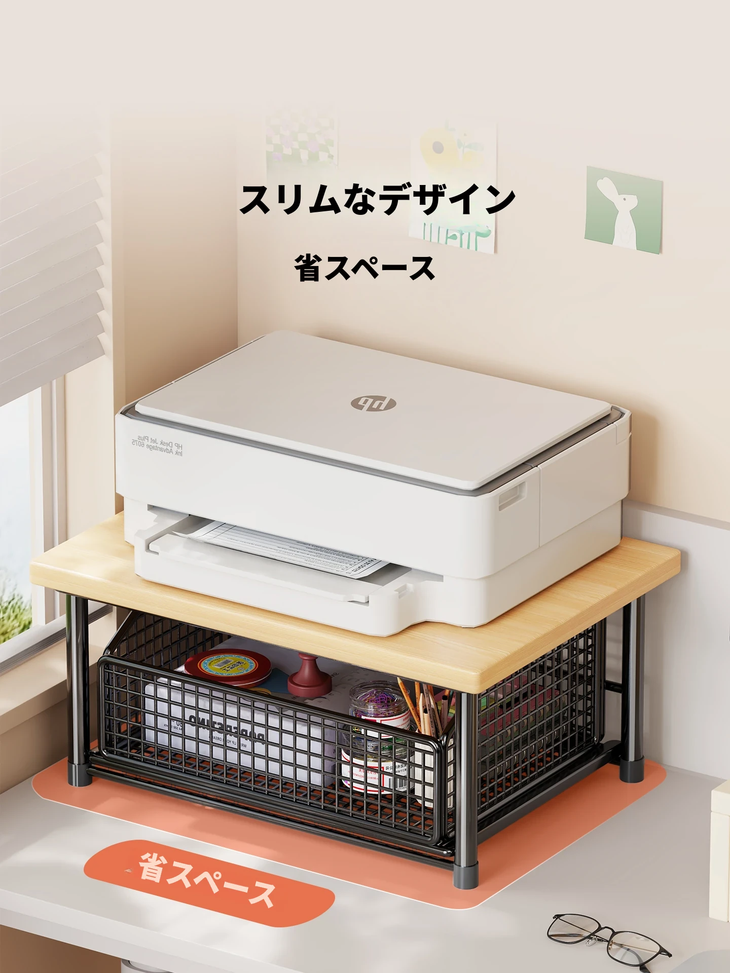 オフィスデスク用スタンド式多段収納ラック!女子の作業スペースを華やかに変身させるマルチ機能の本棚&カップホルダー!整理整頓で快適な仕事環境を実現!