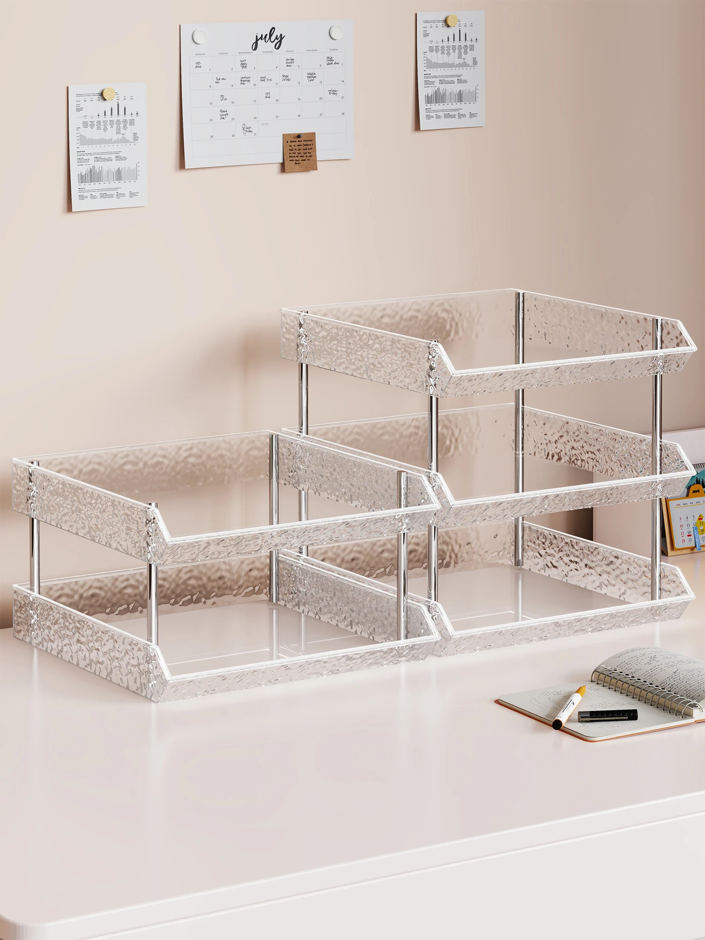 デスク用収納ラック - オフィスや学生寮に最適な多層デザイン!書類や小物をすっきり整理整頓。スペースを有効活用し、作業効率をアップさせる理想的なアイテムです!