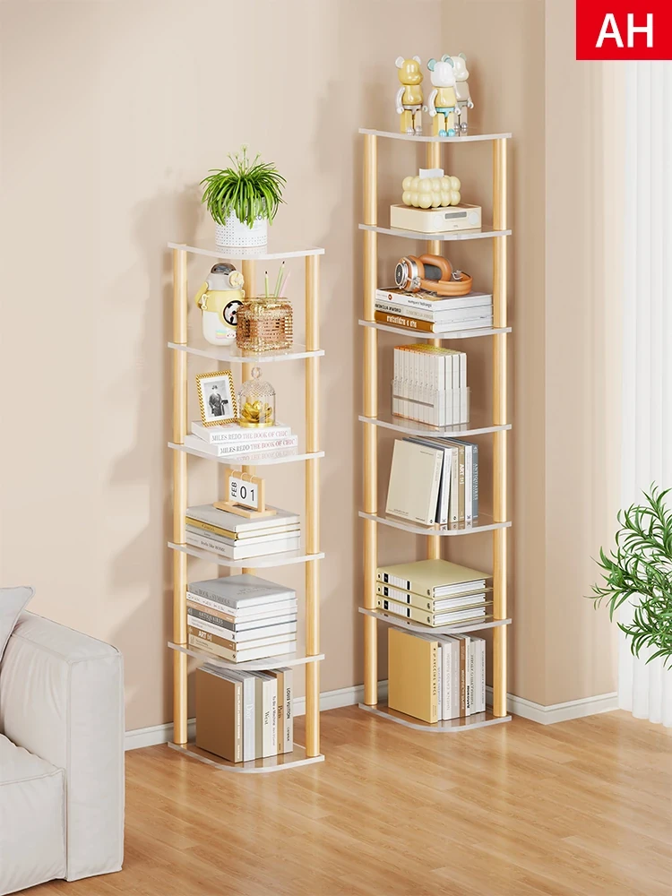 スリムな隙間書棚・フロアタイプの家庭用コーナー収納ラック!壁角にぴったりフィットする小型多層書籍収納キャビネット。おしゃれでスペースを有効活用し、あなたの本を美しく整理整頓!