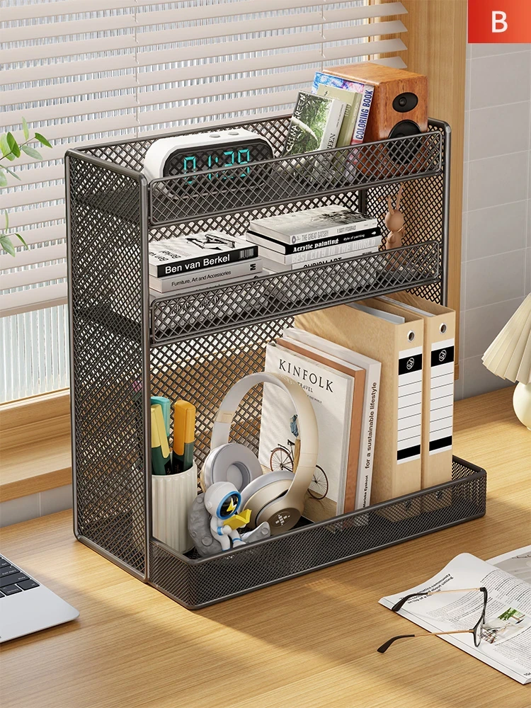 Multi-Tier Desktop Organizer for Students - A4 File Storage and Book Rack, Perfect for Classroom and Home Study, Keep Your Materials Neat and Accessible!